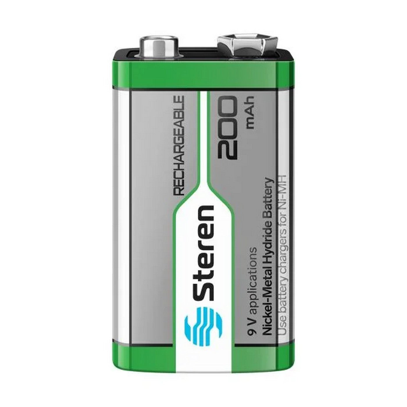Pila o batería recargable níquel-metal, cuadrada, de 9 Volts, capacidad nominal de 200 mAh (miliamperes hora). Se usa principalmente en juguetes.